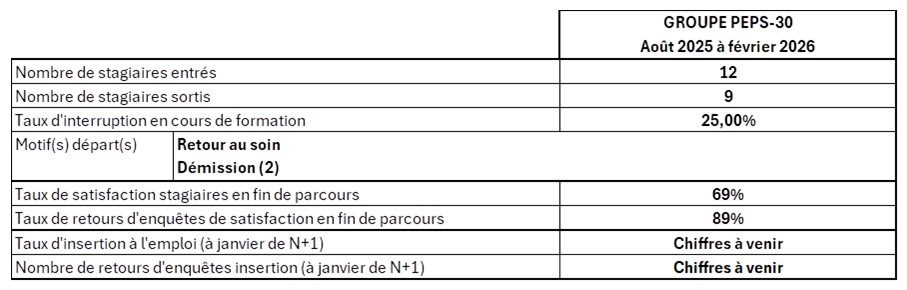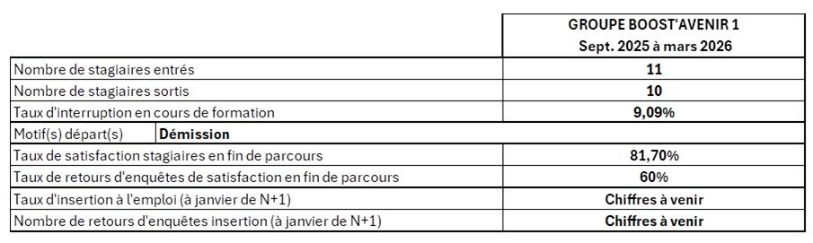 Nos indicateurs de sortie de formation – Mis à jour le 26 mars 2026 Formations qualifiantes Indicateurs formations CADGA et EEHH (parcours non commencés - formations à venir) Préparatoires sectorielles Préparatoires + Qualifiantes Dispositifs travail du projet Total vues depuis le 12 avril 2025 : 146